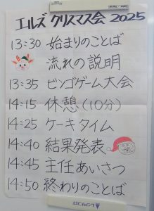 こんにちは、上豊田こころの絆クリニックデイケアL’sです。今回は2025年12月18日(木)に開催したクリスマス会をご紹介します。